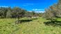 Terrain plat et planté d'oliviers. Village avec commerces et école.